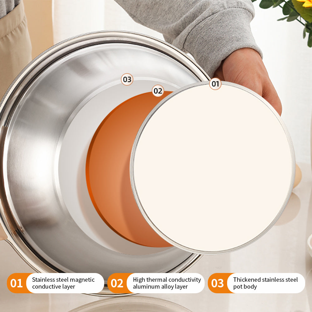 Yurtrain offering durability and efficiency for high-demand kitchens.signed for B2B clients, offering durability and efficiency for high-demand kitchens. Made from high-quality stainless steel, it resists corrosion and high temperatures. The set includes a noodle cooker, soup pot, and stock pot, all providing even heat distribution and large capacity for fast, efficient cooking. Perfect for restaurants and hotels, this set is easy to clean, highly durable, and ideal for commercial kitchens.