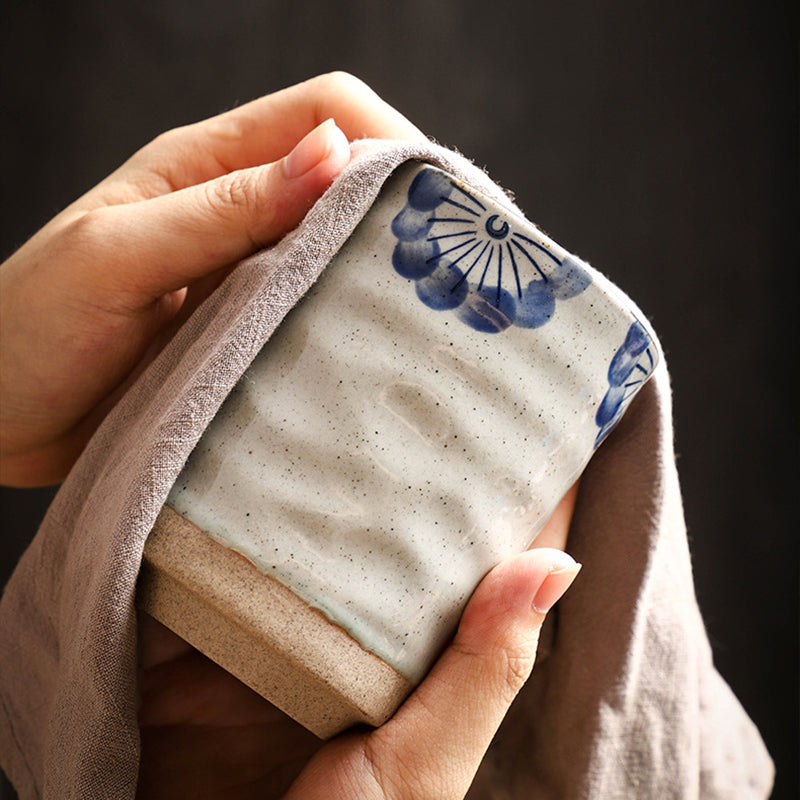Japanese Retro Coarse Pottery Stoneware Coffee Mug Hand-Painted Ceramic Clay Espresso Cup Engraved Design for Tea Milk Water