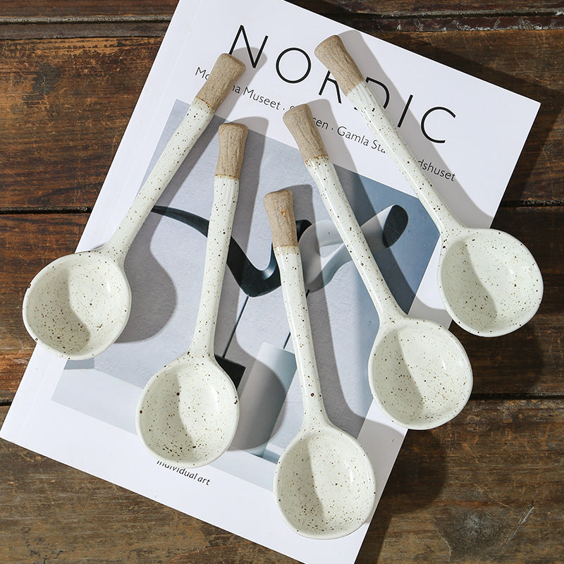 Restaurant Dinnerware Household Ceramic Soup Rice Spoon Japanese Style Coffee Tea Yogurt Ice-cream Spoon Household Dinner Spoon