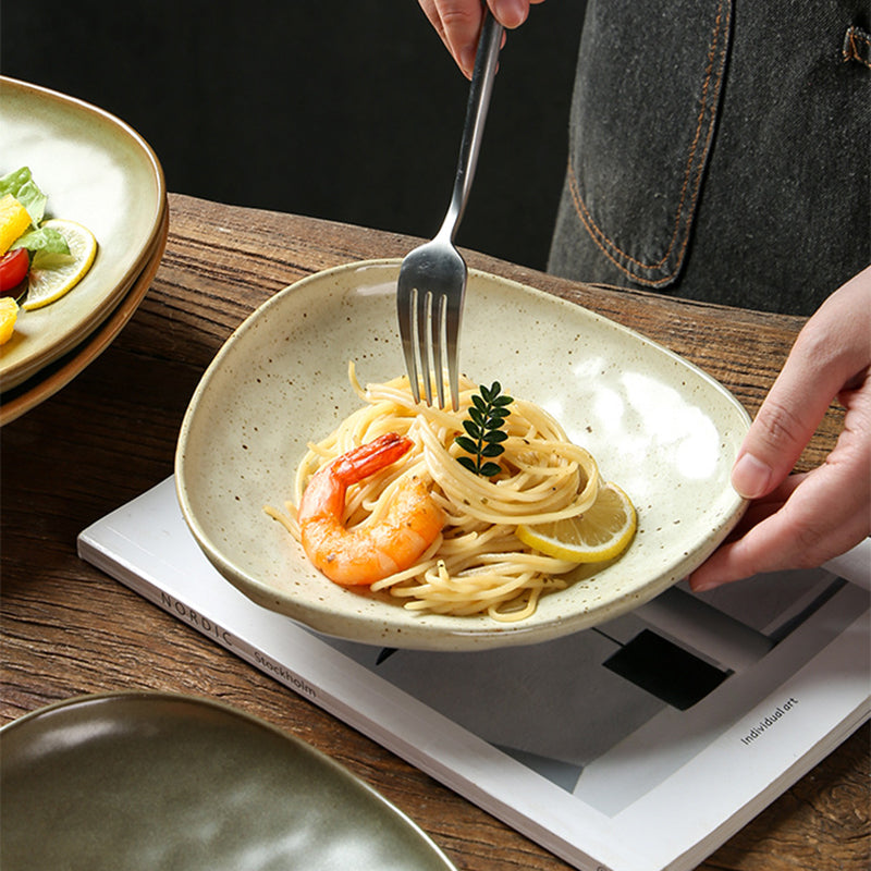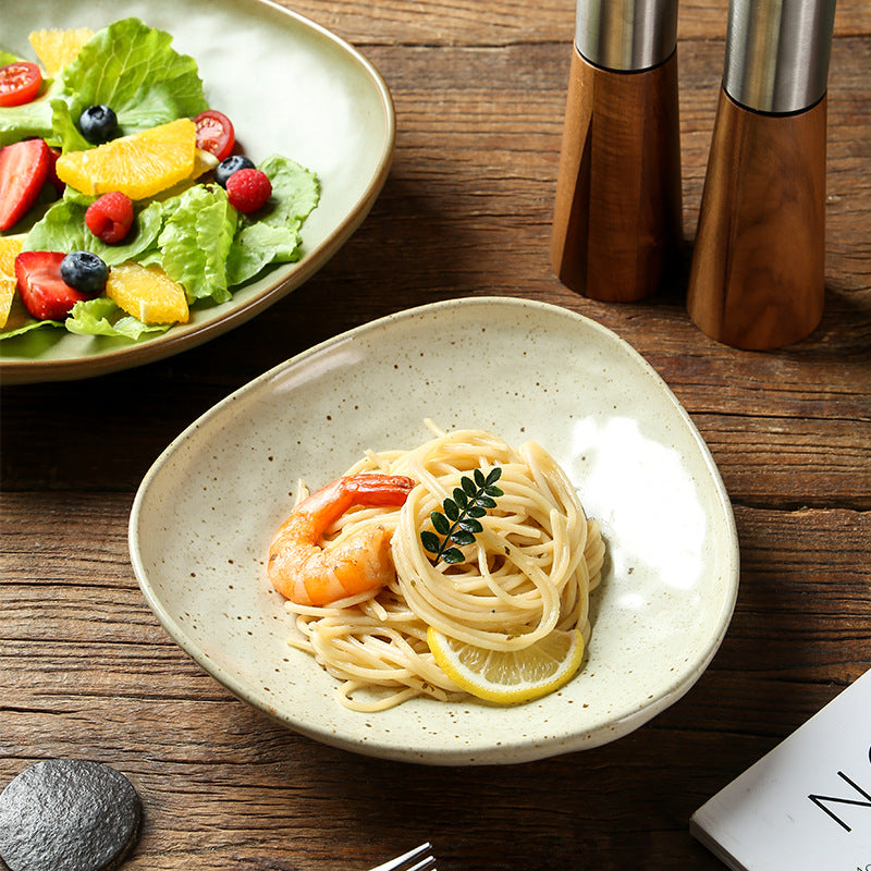 Vintage Japanese Coarse Ceramic Dessert Fruit Salad Bowl Plated Soup Plate with Frost Technique for Commercial Tableware Parties