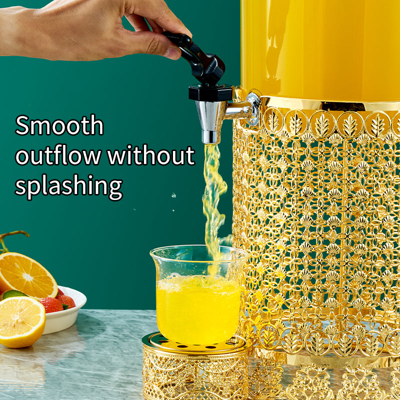 Elevate your beverage service with this Luxury Golden 8L Beer Tower Dispenser, a stylish and functional solution for cold drink dispensing at buffets, bars, catering events, weddings, and parties. Featuring a deluxe golden design, durable plastic tank, and stainless steel base, it’s perfect for serving beer, juice, coffee, tea, soda, or cold beverages. Its large capacity and eye-catching look make it a practical yet elegant addition to any commercial or festive setting.