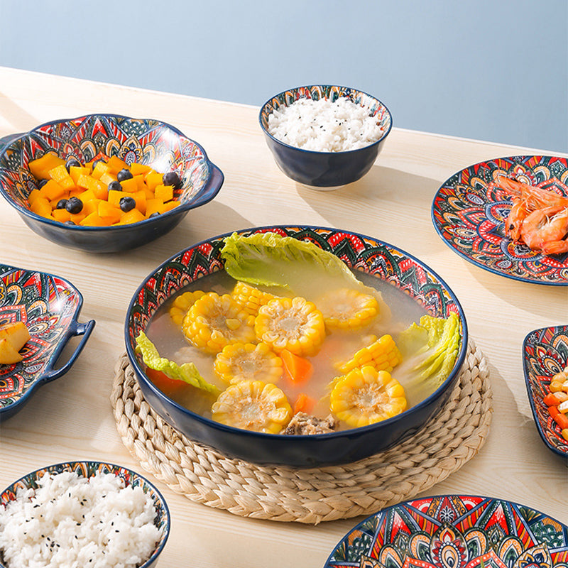 Add a touch of vibrant elegance to your dining with our Bohemian Style Stoneware Dinner Set. Crafted from high-quality ceramic and porcelain, this set features intricate, colorful patterns inspired by Nordic and Bohemian designs. Perfect for both casual meals and formal occasions, it includes plates and bowls that are durable, microwave-safe, and dishwasher-friendly. Ideal for home use or wholesale, this set brings style and functionality to your table.