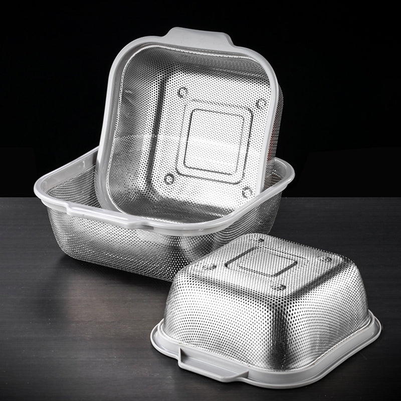 Rice Washing Basket Strainer is a versatile kitchen essential made from durable stainless steel. Featuring a rectangular shape and fine mesh design, it's perfect for washing rice, fruits, vegetables, and other foods. The plastic handle ensures a comfortable and secure grip, making it easy to use for draining and rinsing. Whether for daily use or special meal prep, this strainer combines functionality with durability for all your kitchen needs.