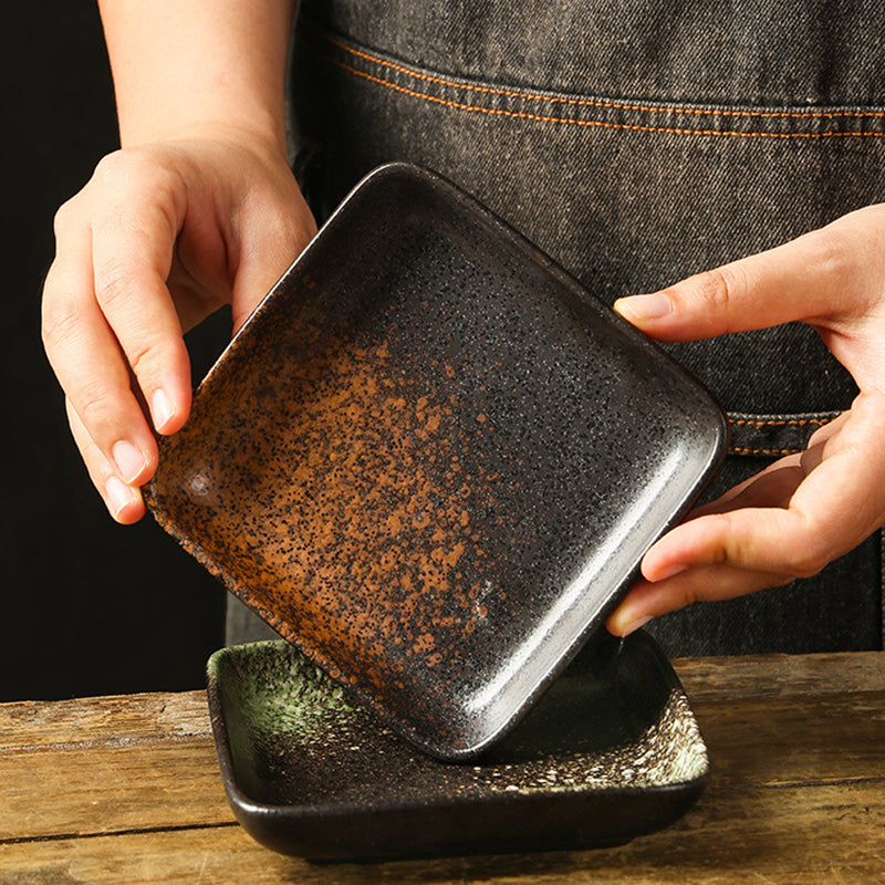 Yurtrain Japanese Style Ceramic Plates Square Sushi Sashimi Barbecue Porcelain Hot Pot Seasoning Saucer Plate Wholesome Frost