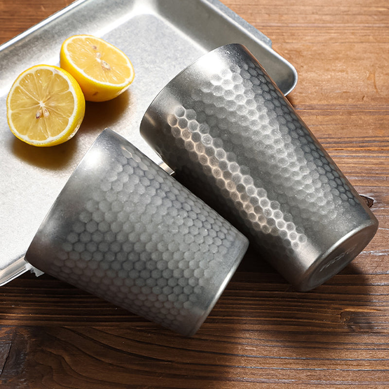 Serve your drinks in style with this premium double-wall 304 stainless steel cup, designed for beer, coffee, tea, or cocktails. Available in stunning finishes like gold, copper, and silver, it features elegant textures—diamond, ripple, or hammered—for a luxurious look and comfortable grip. The double-wall design keeps drinks cold or hot longer while preventing scalding. Ideal for bars, parties, restaurants, or home use. Laser logo customization available, perfect for branding or gifts.