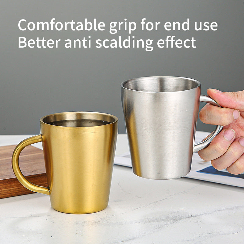 Upgrade your drinkware collection with this Popular Multi-Color Stainless Steel Double-Wall Mug. Crafted from premium 304 food-grade stainless steel, this stylish and durable mug keeps your beverages hot or cold for hours. The double-wall insulation prevents condensation and maintains the ideal temperature, while the ergonomic handle ensures a comfortable grip. Available in trendy colors, including elegant rose gold, this mug is perfect for coffee, tea, beer, or any beverage at home, in the office, or on the go. A perfect mix of fashion and functionality for modern lifestyles.