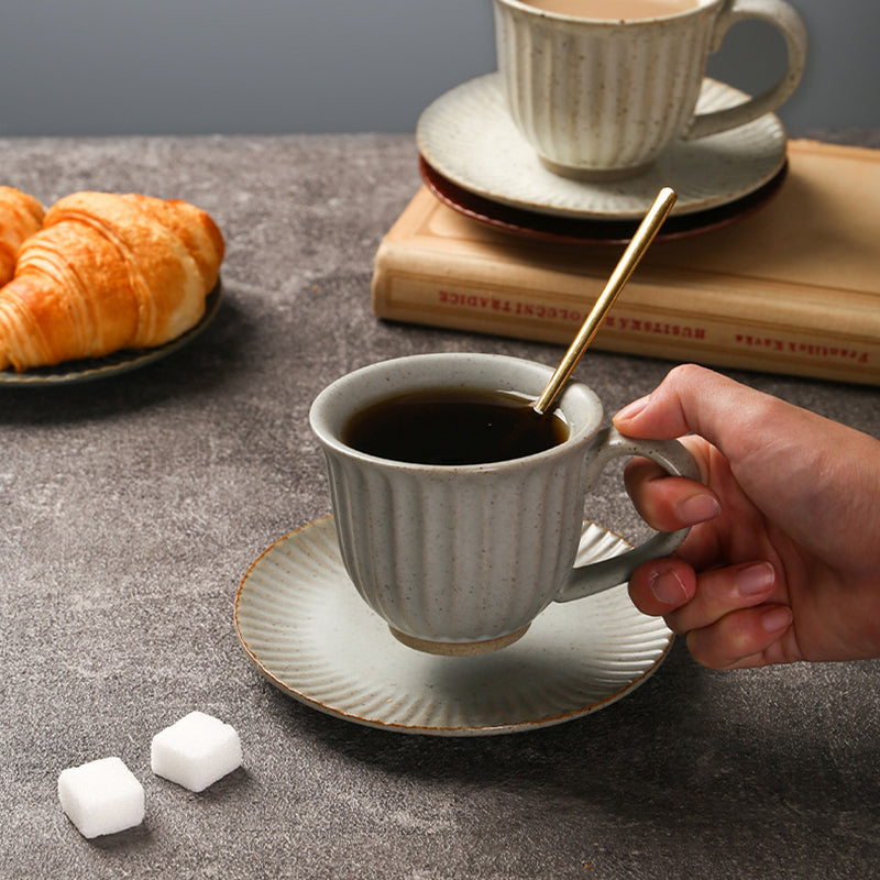 Yurtrain Simple European Vintage Style Latte Cup Ceramic Coffee Cup With Saucer Set Pour-over Coffee Mug with Saucer
